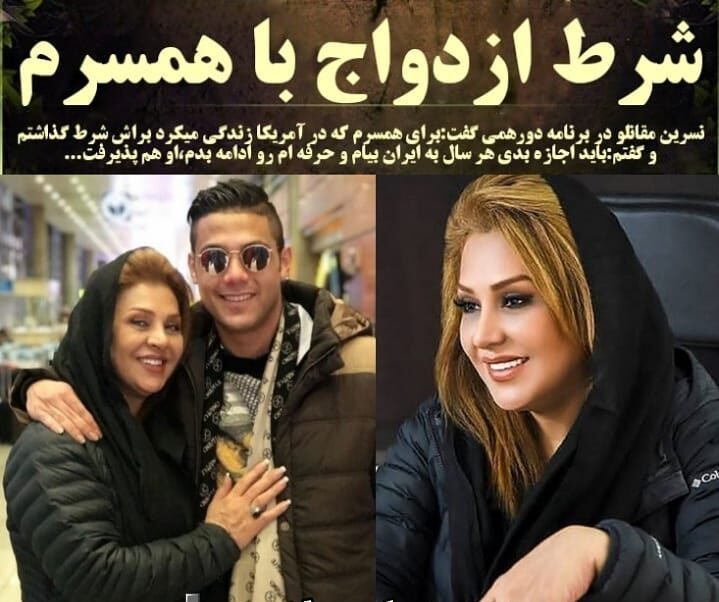 شرط تعجب برانگیز نسرین مقانلو برای شوهرش : شرط این بازیگر محبوب و معروف سینما و تلویزیون برای همسرش باعث سوژه خیلی از رسانه ها و طرفداران این هنرمند شده است . نسرین مقانلو بازیگر کشورمان در باره شرطی که برای شوهرش گذاشت توضیح داد . وی گفت برای همسرم که در امریکا زندگی می کند شرط گذاشتم و گفتم باید اجازه بدهی هر سال به ایران بیایم و حرفه ام را ادامه دهم ، او هم قبول کرد .