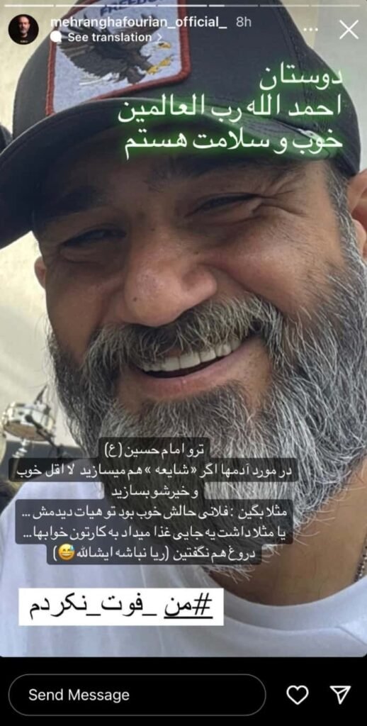 مهران غفوریان بازیگر طناز کشورمان که با نقش بهروز خالی بند «زیر آسمان شهر» مشهور شد اما این روزها با استایلی متفاوت در نقش های جدی نیز درخشیده است، با انتشار یک استوری در صفحه اینستاگرامش خبر فوتش را تکذیب کرد.