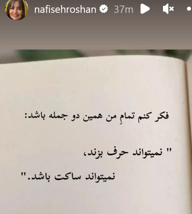 نفیسه روشن هم با یک استوری به وقایع اخیر واکنش نشان داد